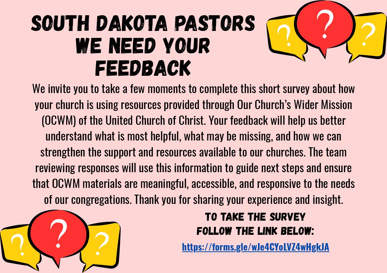 We are seeking to fill pastoral openings in our South Dakota Conference area churches. If you are a pastor seeking a call, please follow the link for more information.