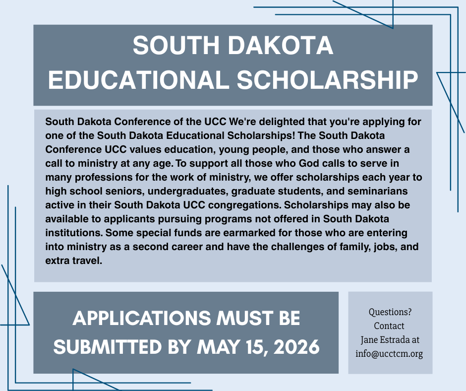 If you have information to share in regards to the South Dakota Conference, please email Tami Spindler or newsandevents@ucctcm.org. Be sure to include all the details…..who, what, when, where, and why. We ask that you have your items submitted by 1:00 pm on Thursdays.